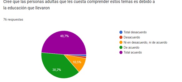 Figura 8. Una gráfica que representa gráficamente la opinión del público respecto a la creencia A la población adulta les cuesta más comprender estos temas.