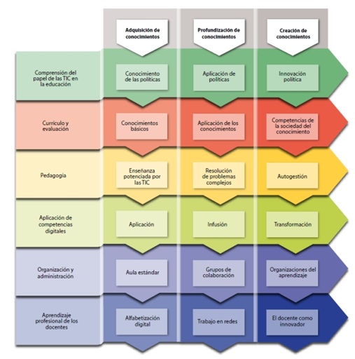 Gráfico 1. Marco de competencias de los docentes en materia de las TIC. Tomado de “Marco De Competencias de los docentes en materia de TIC elaborado por la UNESCO” por UNESCO, 2023, p. 2.