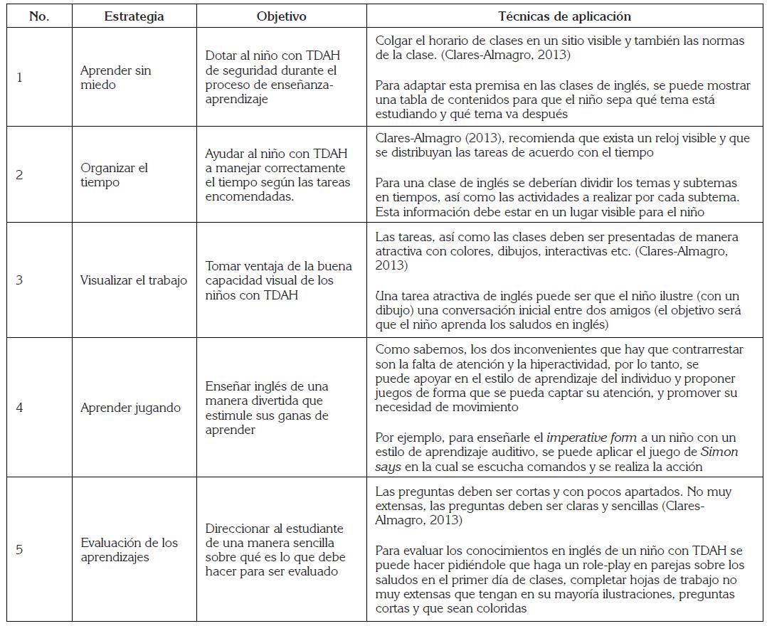 Tabla 4. Estrategias de enseñanza-aprendizaje para estudiantes con TDAH