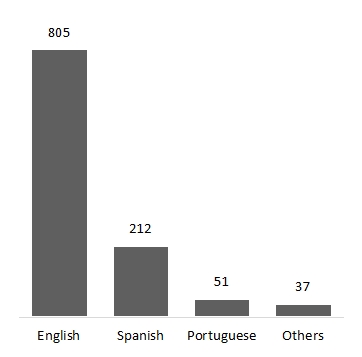 De acuerdo con la información presentada en la Figura 1, el idioma inglés concentra aproximadamente el 72.9% del total de publicaciones analizadas, lo que lo consolida como la lengua predominante en la divulgación de investigaciones en esta área. En contraste, el español ocupa el segundo lugar con un 19.2% de los documentos, seguido por el portugués con un 4.6%, mientras que otros idiomas representan únicamente el 3.3% de la producción científica registrada. Está marcada predominancia del inglés pone de relieve la intención de los autores de ampliar el alcance y la proyección internacional de sus investigaciones.