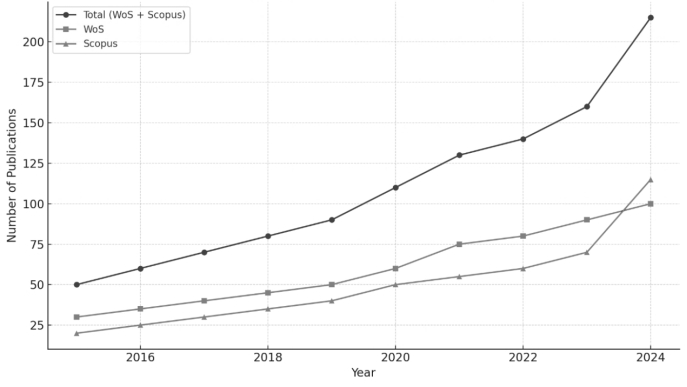 Estas cifras reflejan el creciente interés de la comunidad académica en temáticas relacionadas con la aplicación de videojuegos educativos y el uso de metodologías activas en la enseñanza de las matemáticas en entornos virtuales. Sin embargo, debido a la superposición natural entre ambas bases, fue necesario implementar un riguroso proceso de depuración de registros duplicados, con el propósito de garantizar la unicidad y fiabilidad de los datos analizados. Como resultado, este procedimiento permitió consolidar un conjunto final de 1,105 publicaciones únicas y válidas, las cuales constituyen la base empírica del presente estudio.