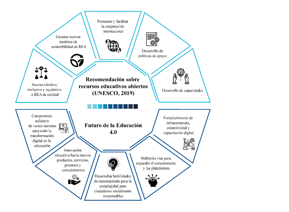 Figura 5. Recomendación sobre recursos educativos abiertos (REA) según la UNESCO, 2019 – Futuro de la Educación 4.0
