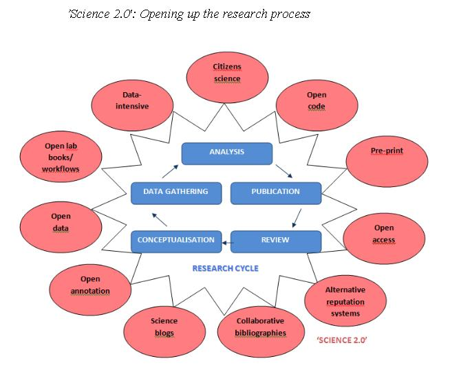 1.1.11 Impulso de lo que se conoce como la Ciencia 2.0, Ciencia en transición. En el 2014 una Comisión Europea realizó una consulta pública a instituciones, autoridades y ciudadanos vinculados a universidades, instituciones dedicadas/financiadoras a la investigación, bibliotecas científicas, sociedades científicas, editoriales científicas, negocios en el campo de la Ciencia 2.0. La consulta se refiere al modelo de actuación de la investigación científica y de la organización de la ciencia en general, teniendo en cuenta las tecnologías digitales, la globalización de la comunidad científica y la necesidad de enfrentarse a los Grandes Retos.