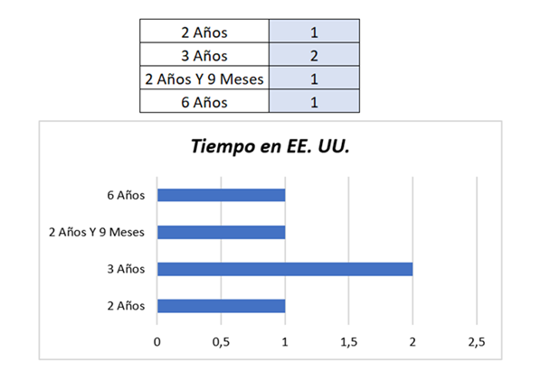 Limitaciones y sugerencias para futuras investigaciones: La principal limitación del estudio radica en el tamaño reducido de la muestra (5 migrantes), lo cual restringe la generalización de los resultados a la población total de migrantes colombianos en EE. UU. Además, la sobrerrepresentación de hombres en la muestra (todos los encuestados son hombres) plantea interrogantes sobre las dinámicas de género en la migración y subraya la necesidad de futuras investigaciones que adopten una perspectiva de género más equilibrada.