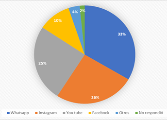Así como menciona Sánchez citado por Espinel (2021), los adolescentes usan las redes sociales para mantener contactos, intercambiar fotos, compartir vídeos, curiosear lo que hacen y dicen otros, comentar sus estados de ánimo y actividades realizadas, disfrutar en grupos, hacer nuevos amigos, entre otras. Es decir, estas favorecen los procesos de integración social, y son, por tanto, un lugar en el que hay que estar. (p.142). Sin embargo, los patrones del uso observado en la plataforma de WhatsApp funcionan como una herramienta de comunicación cotidiana. La preferencia por esta aplicación visual como también Instagram refuerzan la idea que las redes sociales son espacios claves para la socialización y construcción de identidad.