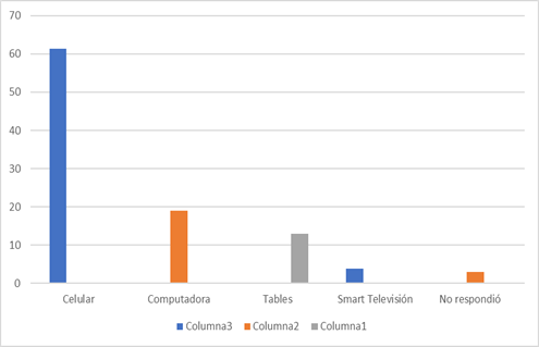 Según los datos obtenidos del estudio, los aparatos tecnológico más utilizado está el celular con un 61.3%, mientras que la computadora con un 19%, Tablet con un 12.9%, Smart Televisión 3.8% y un 3% no respondió. Para González (2023), la dependencia a los dispositivos móviles, cada vez es más difícil ignorar el uso de la tecnología, estamos en una época donde, es sumamente esencial para la vida cotidiana, pero discutamos el tema de los niños, donde el uso del móvil se ha transformado en una cuestión básica y necesaria en su vida, esto por la falta de atención de los padres.