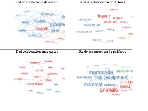 The accelerated technological innovation, the boom, and the economic value today of camera traps, have allowed techniques such as photo trapping, to detect wildlife in areas named as nature reserves, generating records of high interest from the capture of images and videos through photographic equipment and other elements such as motion sensors, Digital cameras, memory card, infrared and batteries. This technique is used in various wildlife research, environmental education and species control. Therefore, this research conducts a literature review that shows the relationships between different keywords, indicating relevant knowledge about camera traps and the detection of animal life. A search of different documents was made in the WoS database and the same in Scopus with a range of dates between 2005 and 2022, in turn, search techniques, different digital tools of bibliometrics and network analysis were used, identifying two research clusters. Finally, future research is delivered.
